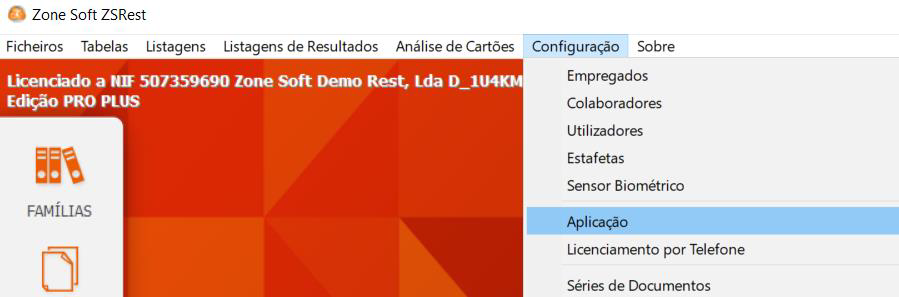 - No backoffice da aplicação selecionar o separador Configuração, no menu acionar o botão Aplicação: