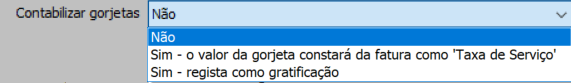 - No campo de seleção Contabilizar gorjeta, pode-se: