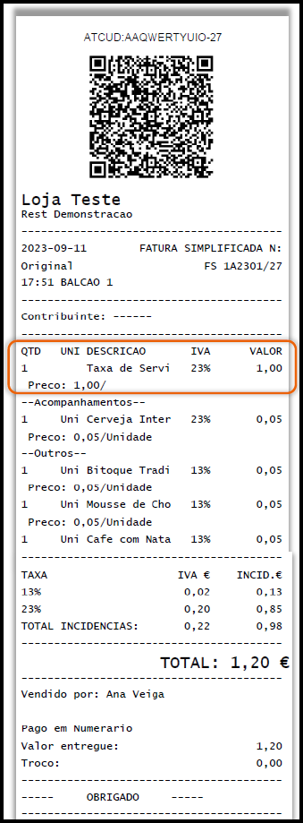 - O valor da gorjeta constará da fatura como ‘Taxa de Serviço’, neste caso, o valor entregue como gratificação do serviço, é inscrito no documento fatura bem como o respetivo imposto do I.V.A;