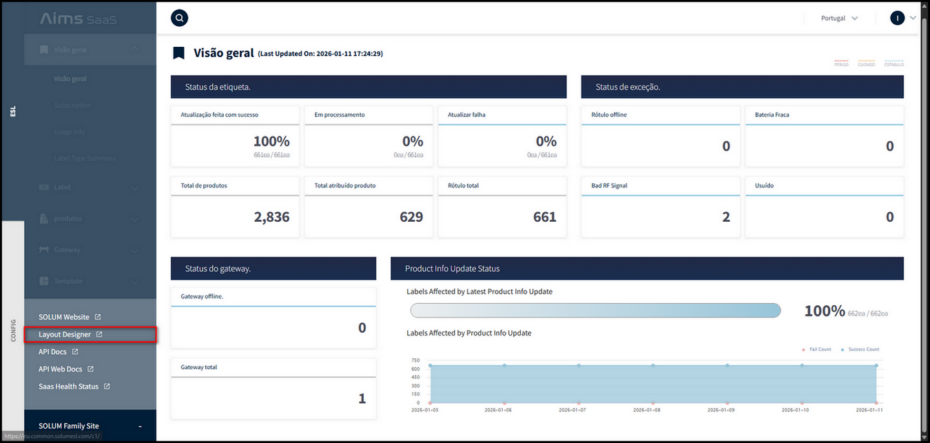O acesso à plataforma Layout Designer é efetuado a partir do link: https://eu.common.solumesl.com/c1/.