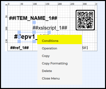 - Sob o campo do preço "Preço 1", clique com o botão direito do rato. Clique em "Conditions":