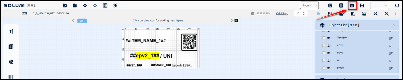 - Adicione o campo "Preço1" e "Preço2" ao Layout da Etiqueta Eletrónica;