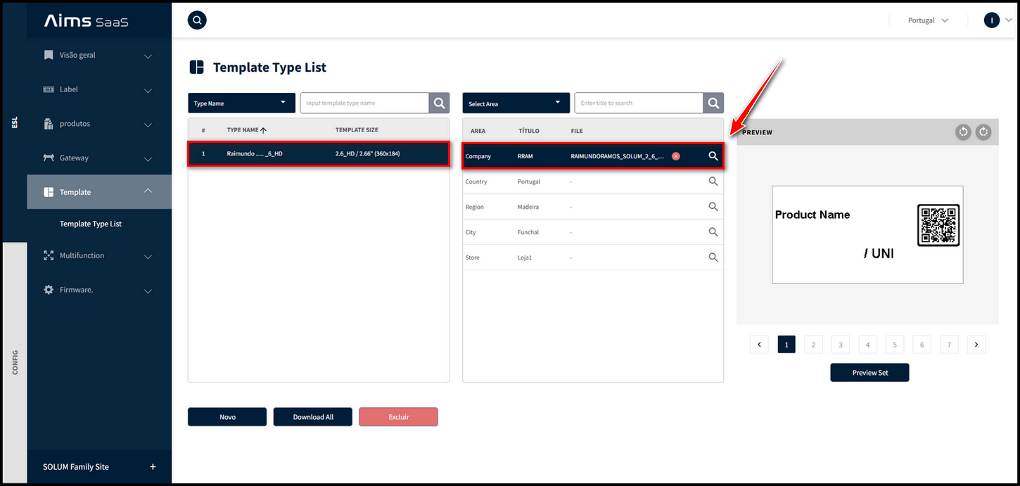- Selecione a template, clicando na "Lupa", conforme demonstrado de seguida: