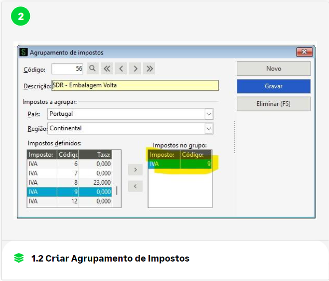 - Aceder a Tabelas > Agrupamento de Impostos