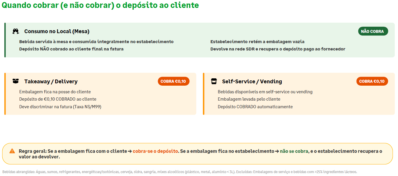 A entrada em vigor do Sistema de Depósito e Reembolso (SDR) em Portugal, no passado dia 10 de abril de 2026, de acordo com a legislação aplicável, introduz novas exigências operacionais para os estabelecimentos que comercializam bebidas em embalagens abrangidas, nomeadamente no tratamento do depósito, na venda e, quando aplicável, na devolução ao cliente